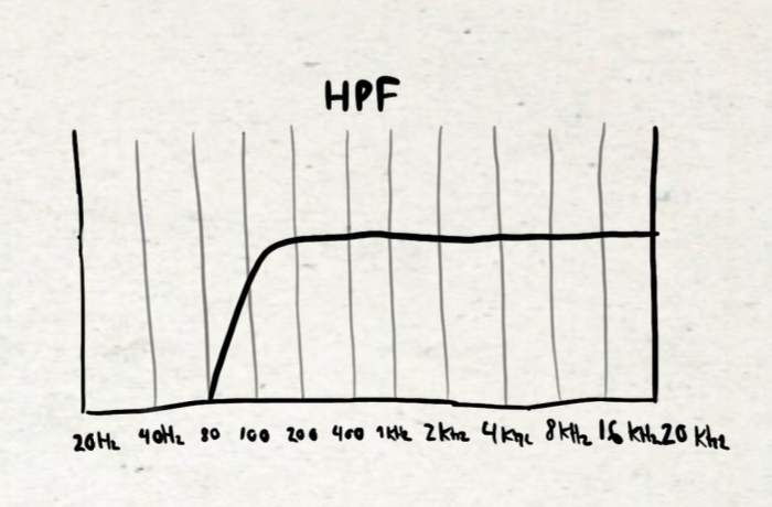 - HPF eli Highpass filter on suodin, joka päästää korkeat äänet läpi ja suodattaa matalat äänet pois