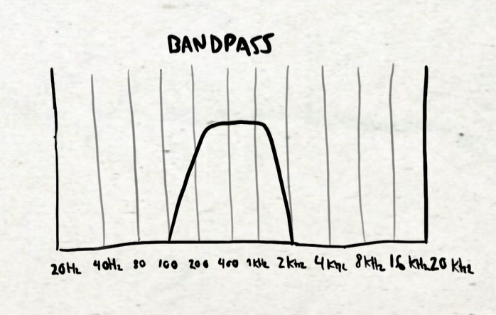 - Bandpass filter päästää vain tietyn taajuuskaistan läpi