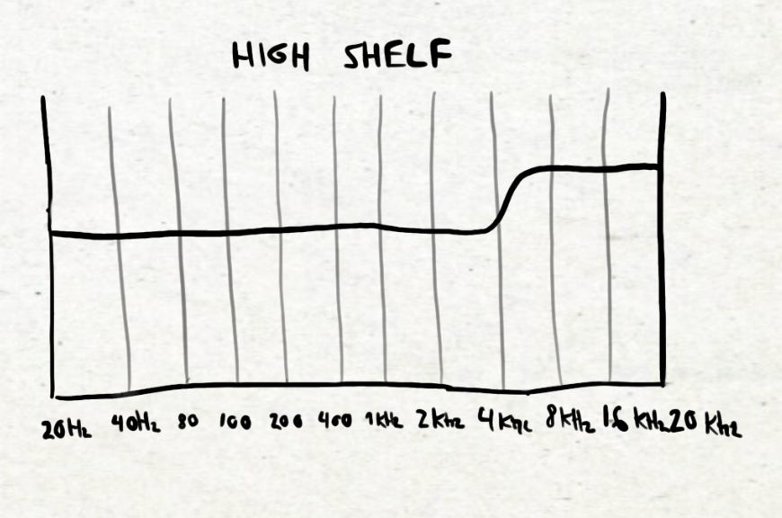 - Hylly eli shelf korostaa kaikkia taajuuksia tietyn taajuuden ylä- tai alapuolelta